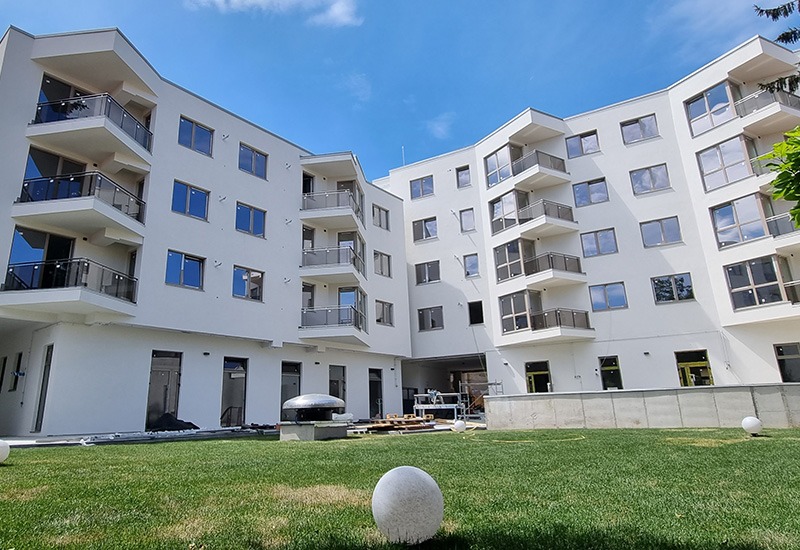 Apartamentele sunt dispuse pe 4 niveluri și au 2 sau 3 camere, cu suprafețe utile între 47- 105 mp, la care se adaugă balcoanele sau terasele. La ultimul nivel se află apartamente de tip penthouse cu terase generoase. La parter sunt spații comerciale și de servicii. Fiecare apartament dispune de un loc de parcare în garajul subteran sau un loc de parcare exterior.